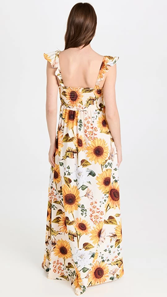 Always a charming pick for sunny days, this Agua Bendita dress draws the eye with a vivid sunflower print and a sweet smocked bodice. Wear yours with earth-tone slides or heeled sandals.
