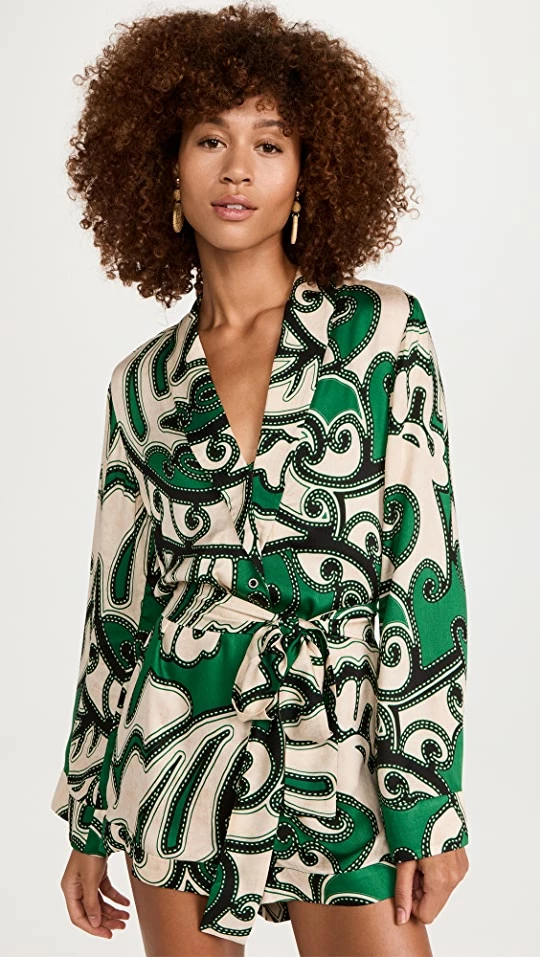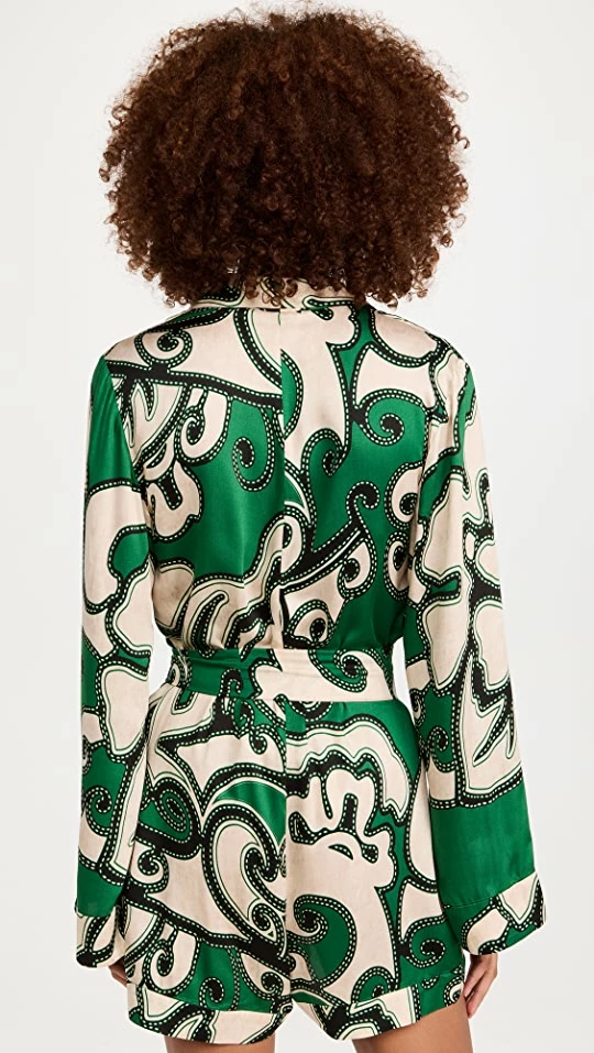 Comfortable, sophisticated, and striking in equal measure, this one-of-a-kind Alexis romper is crafted from silky, lightweight fabric and accented with a bold allover print. Wear yours with a strappy pair of heeled sandals.