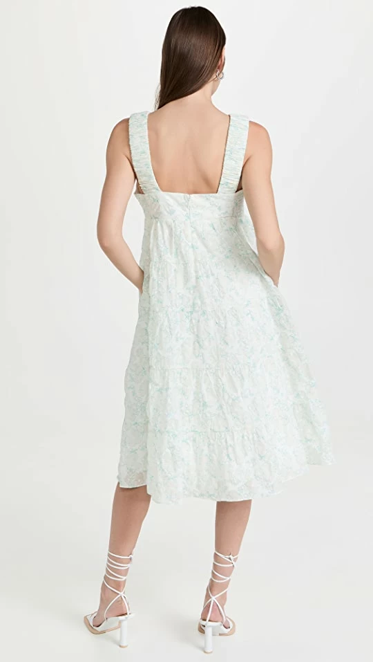 - Tiered skirt and gathered seams