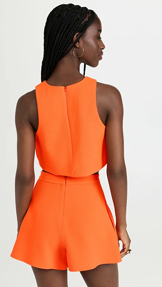 Take your look in a bold yet sophisticated direction with this Black Halo romper, which features a unique two-piece design and an eye-catching neon shade.