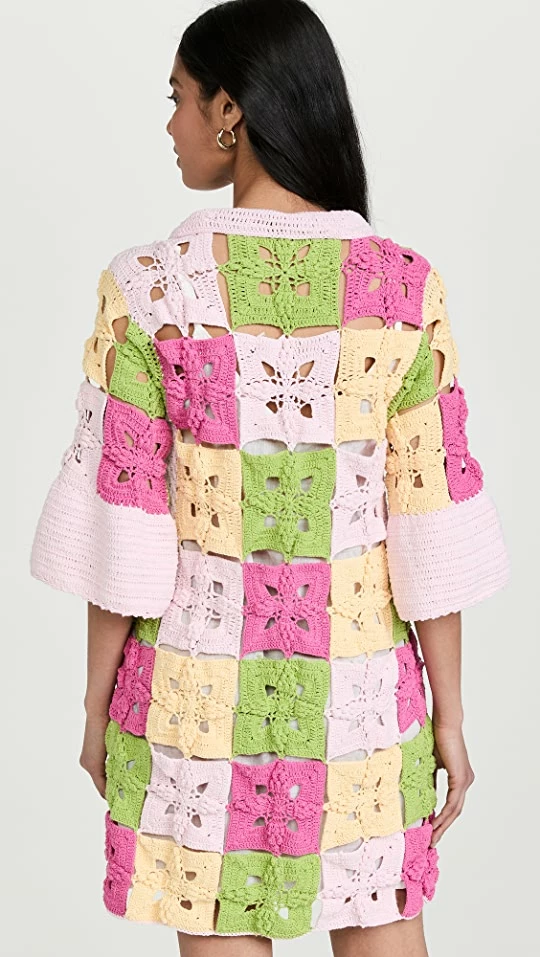 - Collared neckline and 3/4 length sleeves with flared cuffs