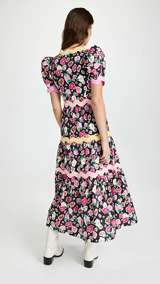 - Floral print and rickrack trim