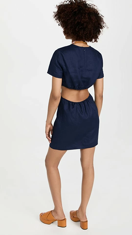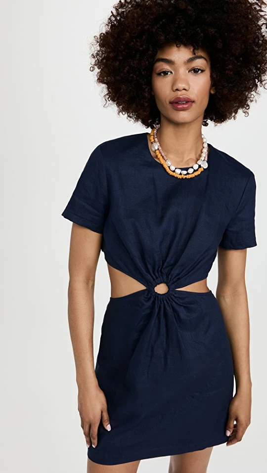 A wraparound cutout accentuates the waist of this STAUD mini dress, which gains a cool, minimalist look from monochrome color and understated proportions.